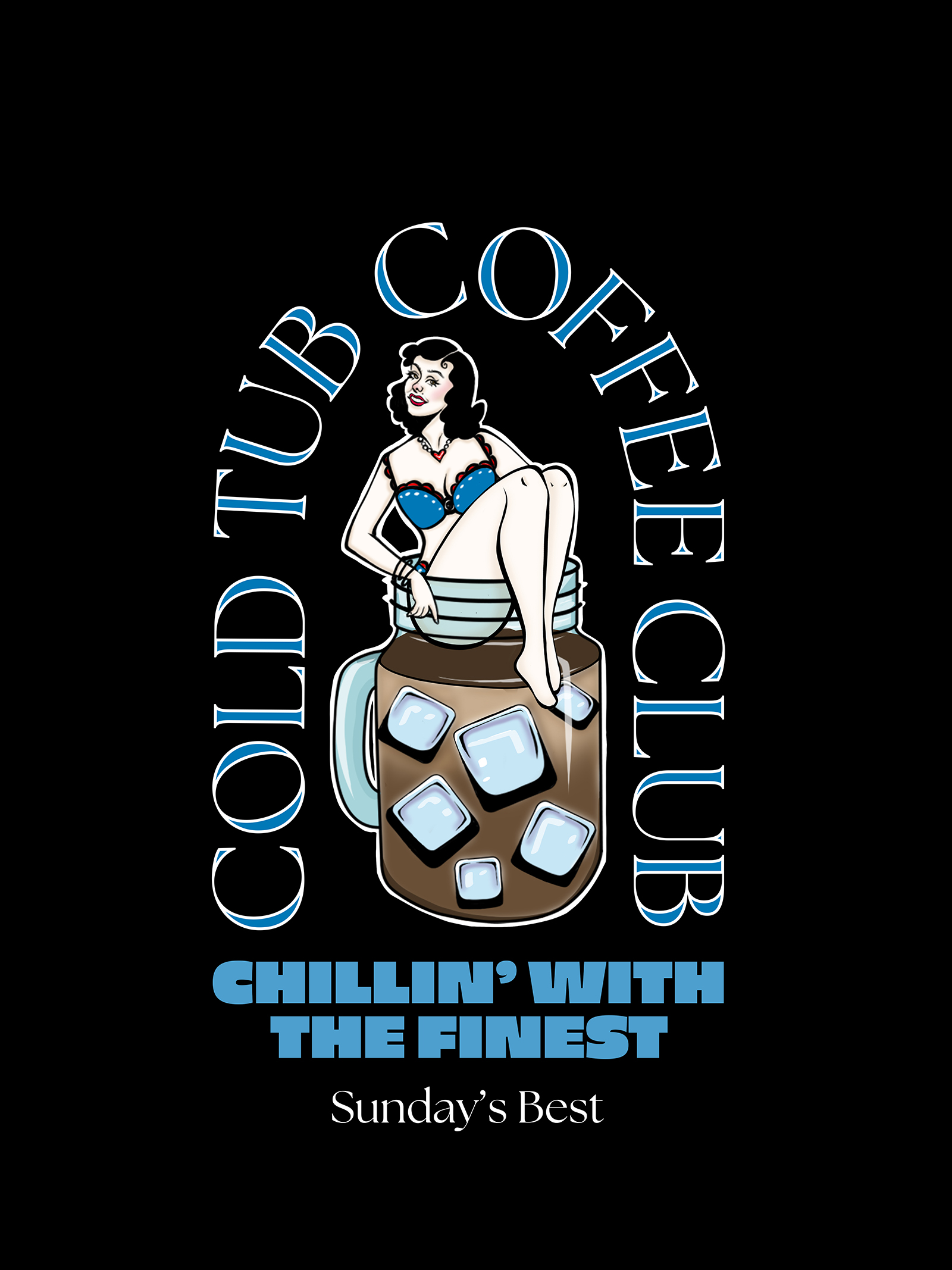 This project translated the Cold Tub Coffee Club’s playful, community-driven energy into wearable and collectible graphics that members could rally around. Inspired by the contrast of icy water and warm coffee, the designs blend retro pin-up illustration with bold, vintage typography to create a look that feels both nostalgic and tongue-in-cheek. The artwork captures the club’s core idea—embracing discomfort together, then rewarding it with connection and caffeine—while remaining versatile enough to work across t-shirts, stickers, and event merchandise.