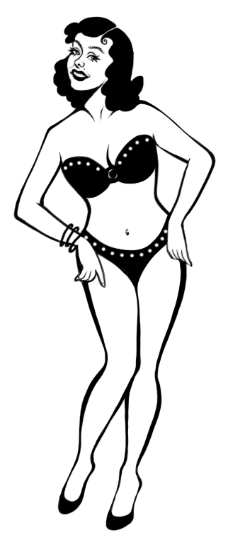 Early sketches explored different poses, hairstyles, and styling before landing on the final confident, seated pose inside the glass mug. Refining linework, proportions, and color built a mascot that feels vintage, flirty, and fun without overpowering the brand name.