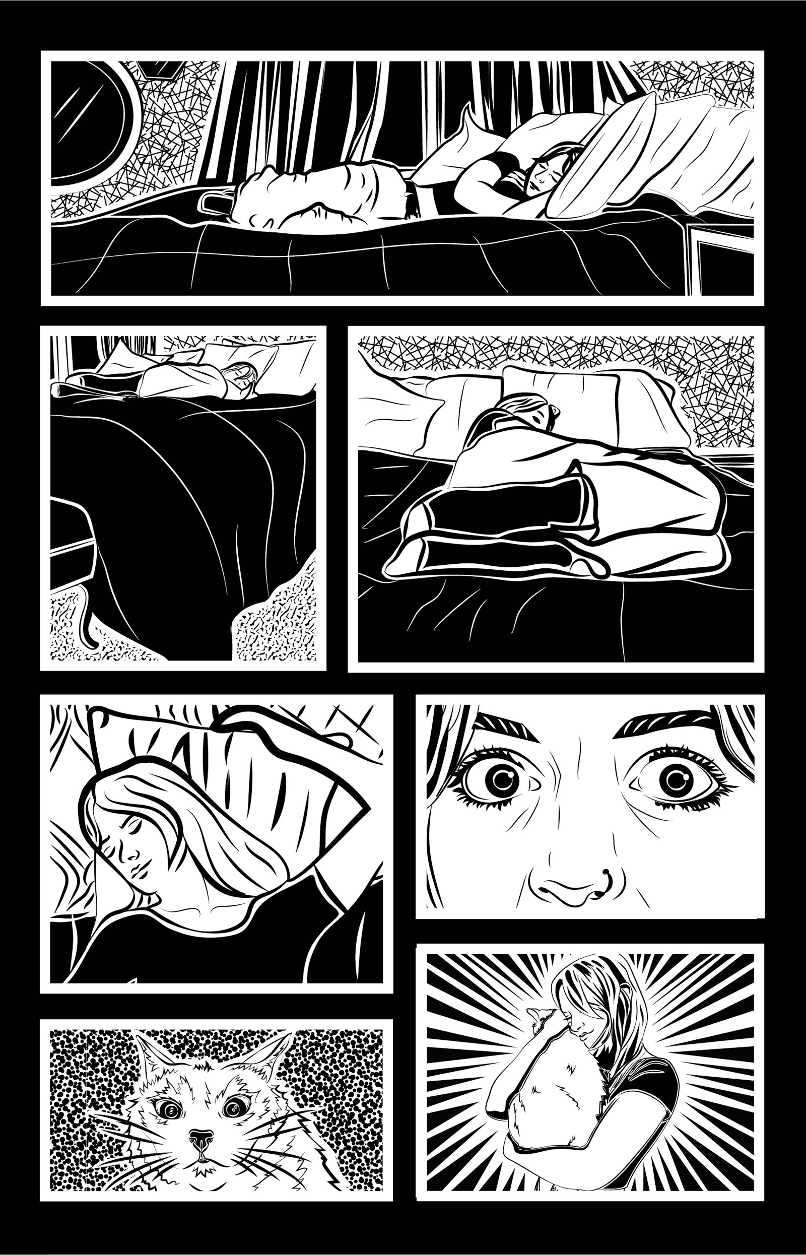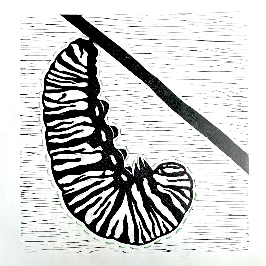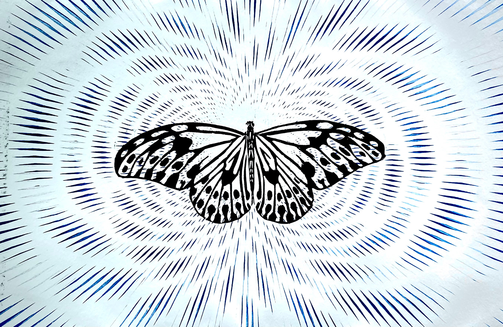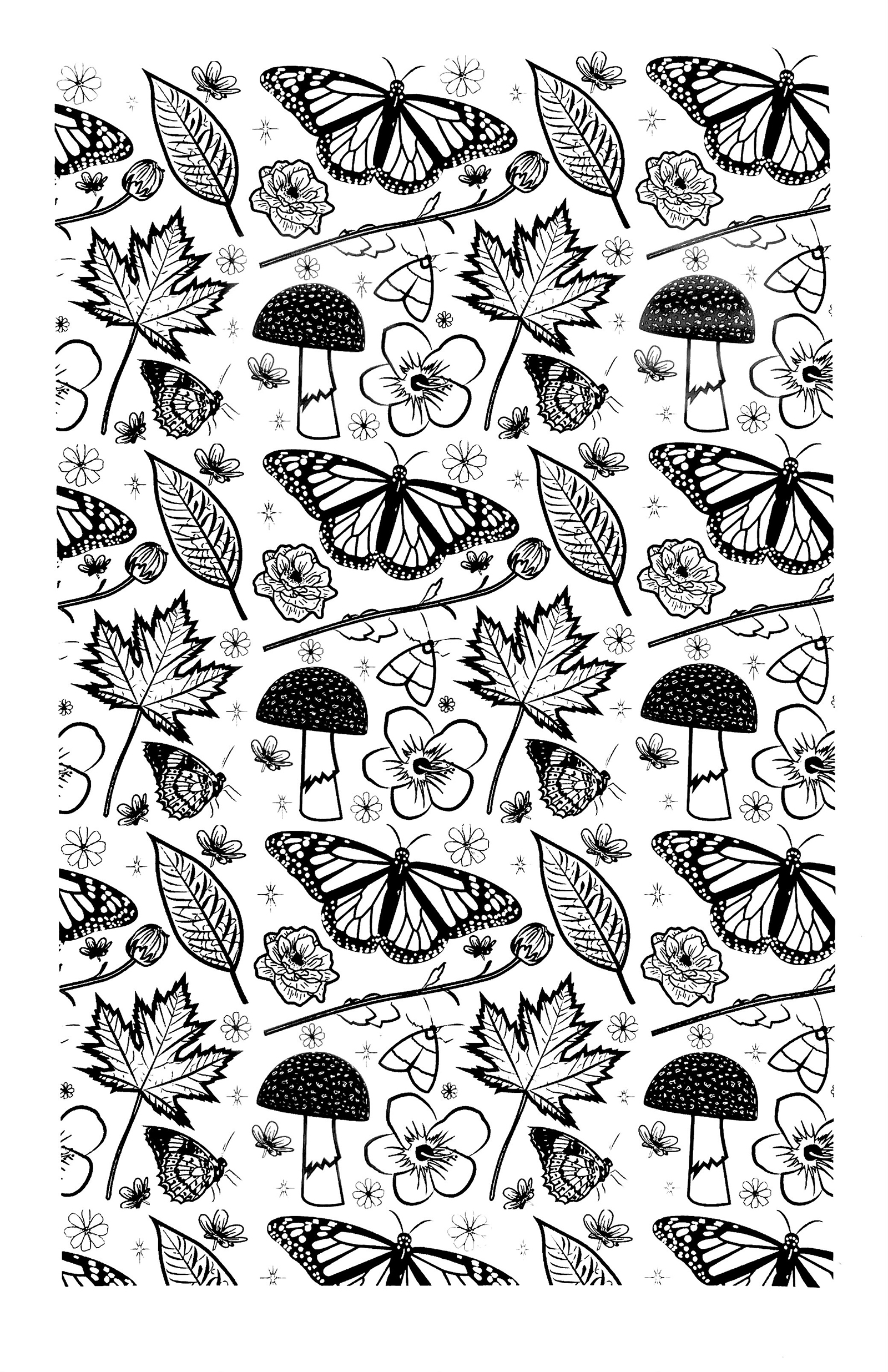 This collection brings together digital illustrations, screenprints, cyanotypes, and linocut prints that all share a slightly edgy, nature-inspired visual language. Animals and organic forms are used as storytelling devices, from a short comic capturing the chaotic humor of a cat abruptly waking its owner, to a whimsical tarot-inspired series featuring scenes like a wandering camper, a wizardly frog, and a sunglasses-wearing fashionista dog. Traditional printmaking processes add texture and unpredictability, with butterfly studies rendered through linocut and cyanotype techniques that emphasize contrast, silhouette, and natural patterning. The series is rounded out by a portrait of Tim Burton interpreted through his signature claymation aesthetic, blending homage with experimentation and reinforcing the overarching theme of surreal, slightly dark, but playful interpretations of the natural world.