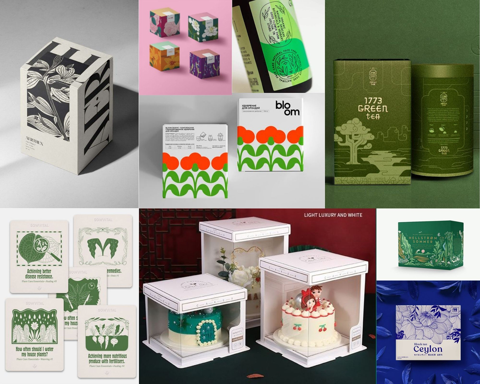 This moodboard blends whimsical dessert branding with lush, plant-inspired visuals to define the tone of Sweetscape. Rounded typography, pastel palettes, and friendly illustration styles are paired with structured, giftable box formats and garden-like motifs, establishing a balance between cute and curated. The references highlight how confectionery packaging can feel both collectible and alive, guiding the direction toward a product that looks handcrafted, colorful, and rooted in the visual language of miniature terrariums and blooming plants.