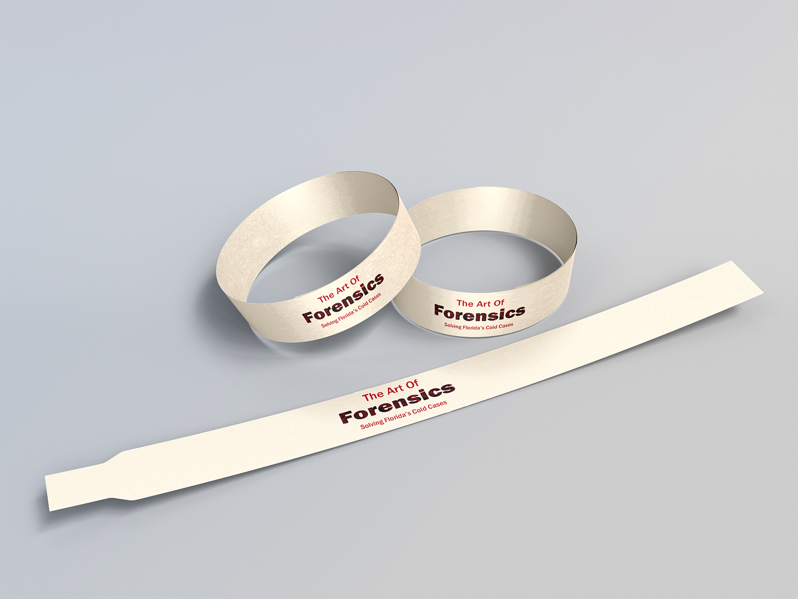 Every touchpoint of the exhibit extends the identity beyond the walls and into visitors’ hands. Each ticket includes a branded tote bag and pen, giving guests practical keepsakes that carry the exhibit’s visual language into everyday life. Staff members wear matching T-shirts and lanyards so visitors can easily identify knowledgeable guides, reinforcing both wayfinding and trust. Upon entry, guests also receive a branded wristband, turning admission into a subtle, wearable artifact that connects the experience, the people, and the purpose of the exhibit through a consistent, evidence-inspired graphic system.